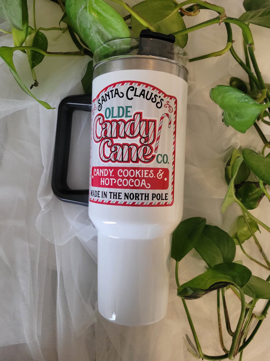 40oz candy cane/ santa tumbler with handle