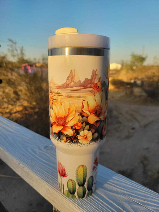 40oz desert cactus tumbler with handle